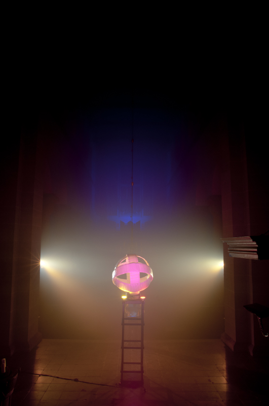 Een fotografische impressie van de pregenerale van het project Trajecti Illumina in de Pieterskerk, naar een ontwerp van Johan Kuhlmann en lichtrealisatie van Jasper van den Boezem, in januari 2013